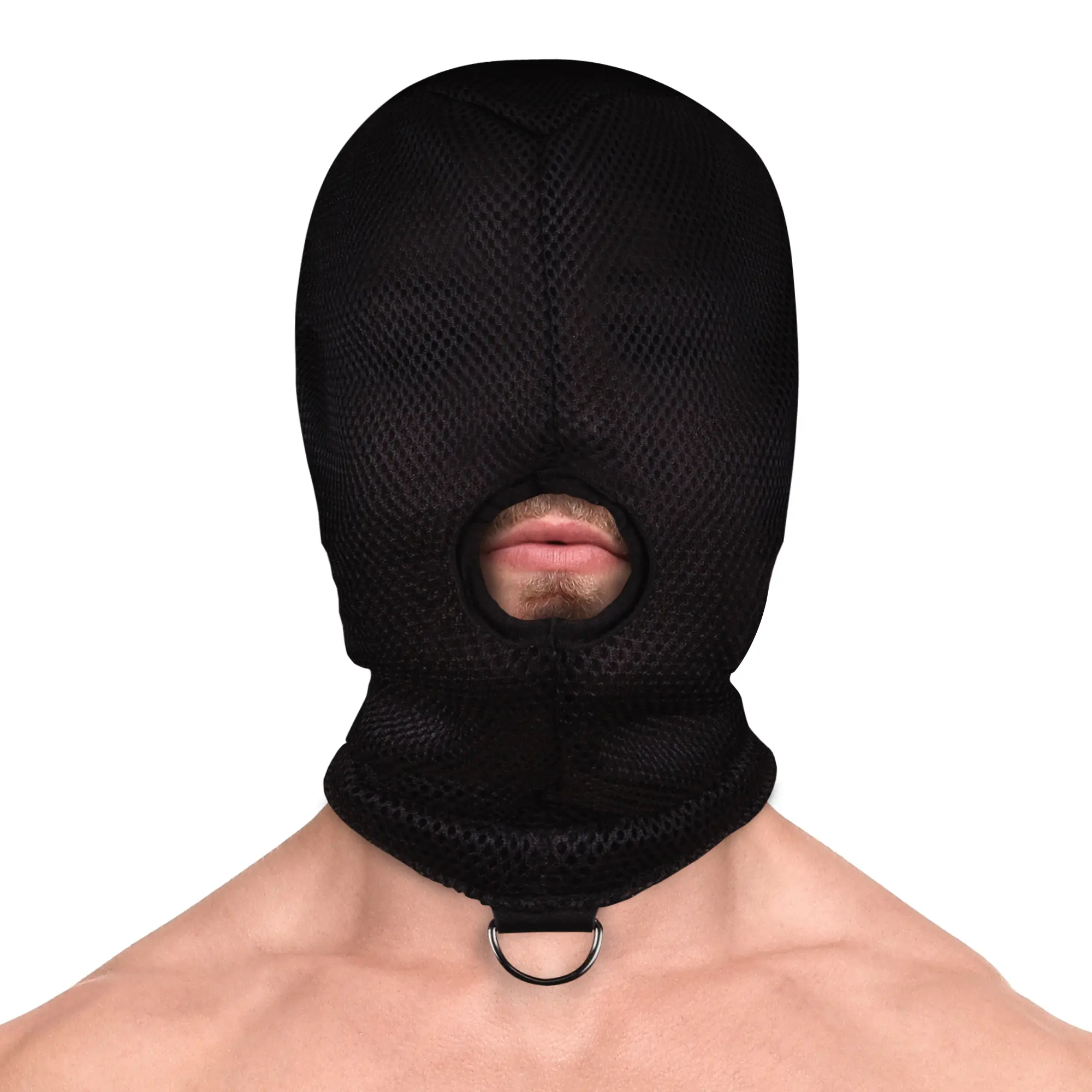 Once your master walks into the room, pulling this hood over your head, you wouldn’t dare to not obey! This mask features a metal key ring so you can hook up any bondage toy that gets locked with snap closures like cuffs or leashes.