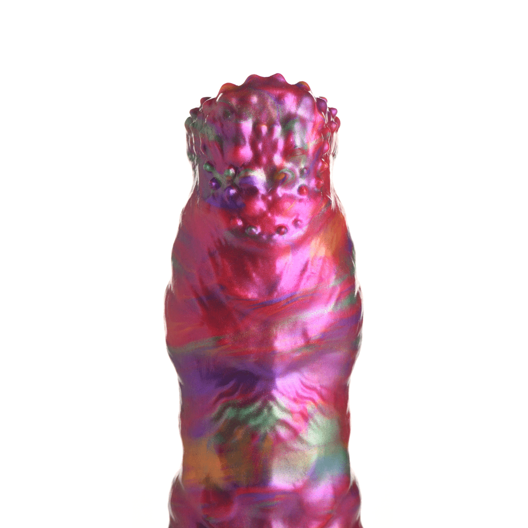This thick, textured shaft from Creature Cocks is one of the most colorful yet. With a mix of rich, vibrant, iridescent colors with shades of pink, green, orange and purple.