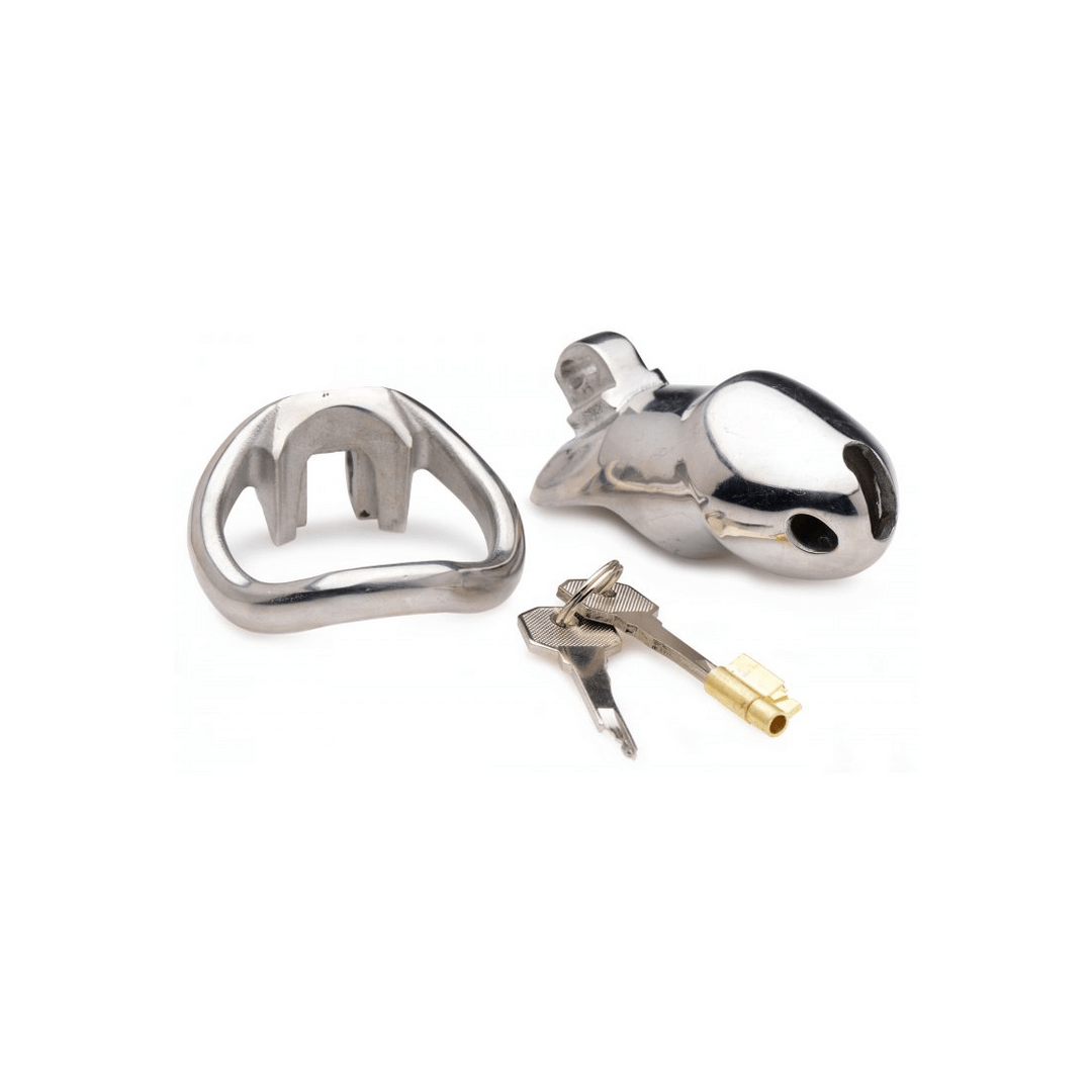 Keep your slave confined all day and all night! This chastity device has a uniquely compact design. With an internal locking system. That prevents a bulky appearance under clothing.